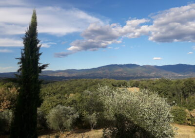 La cucina soggiorno si affaccia su una panoramica loggia che guarda le belle montagne del Pratomagno dove d’estate potrete consumare i vostri pasti o semplicemente rilassarvi su una sedia a sdraio.