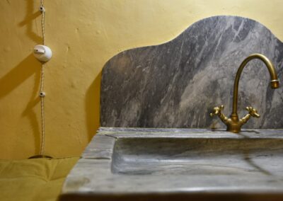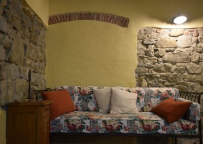 Recupera lo spazio che prima era destinato alla stalla, si trova al piano terreno, è composto da una camera matrimoniale, un’ampia cucina soggiorno con un divano che può essere usato anche come comodo letto singolo e un bagno.