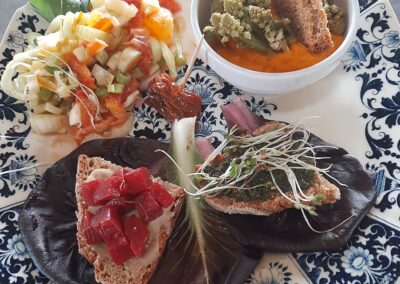 Alla BioAgriOsteria infatti gli ingredienti provengono dal loro orto o dalla rete di produttori di loro conoscenza che lavorano con etica e sostenibilità; sarete accompagnati nella degustazione; qui l’ambiente stimola l’ascolto e l’interesse; tutti i sensi vengono riabilitati. Le degustazioni si fanno nel nostro fienile certificato CasaClima e ricostruito in legno locale; vecchie e nuove travi di legno si mescolano all’acciaio e il risultato è un piacevole stile diviso a metà tra il rustico e l’industriale.