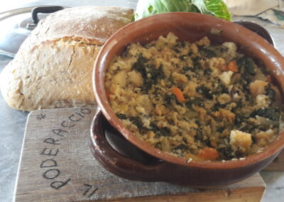 La cucina alla Bioagriosteria è caratterizzata da portate semplici di cucina tradizionale contadina, talvolta rivisitate in chiave salutistica, pasta fatta in casa con uova delle nostre galline, ricotta del pastore e farine di grano duro del territorio; pane di pasta madre a lievitazione naturale con farine di grani tradizionali biologici da produttori locali; una cucina prevalentemente vegetale e integrale, la carne – solo su richiesta – è selezionatissima da piccoli allevamenti o provenienti da cacciatori autorizzati locali accompagnata da vini biologici e biodinamici .